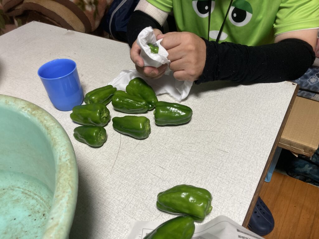 ブログ 採れたて野菜の出荷準備です Posted on 2025年9月2日 by aunkuru 02 9月 除草剤も防虫剤も使わずたくましく育った野菜たちを丁寧に布巾で拭いて「道の駅たきかわ」「菜の花館」へ出荷しています。 aunkuru 鶏唐揚げとパン 焼き魚(紅鮭)とナスのみそ炒め