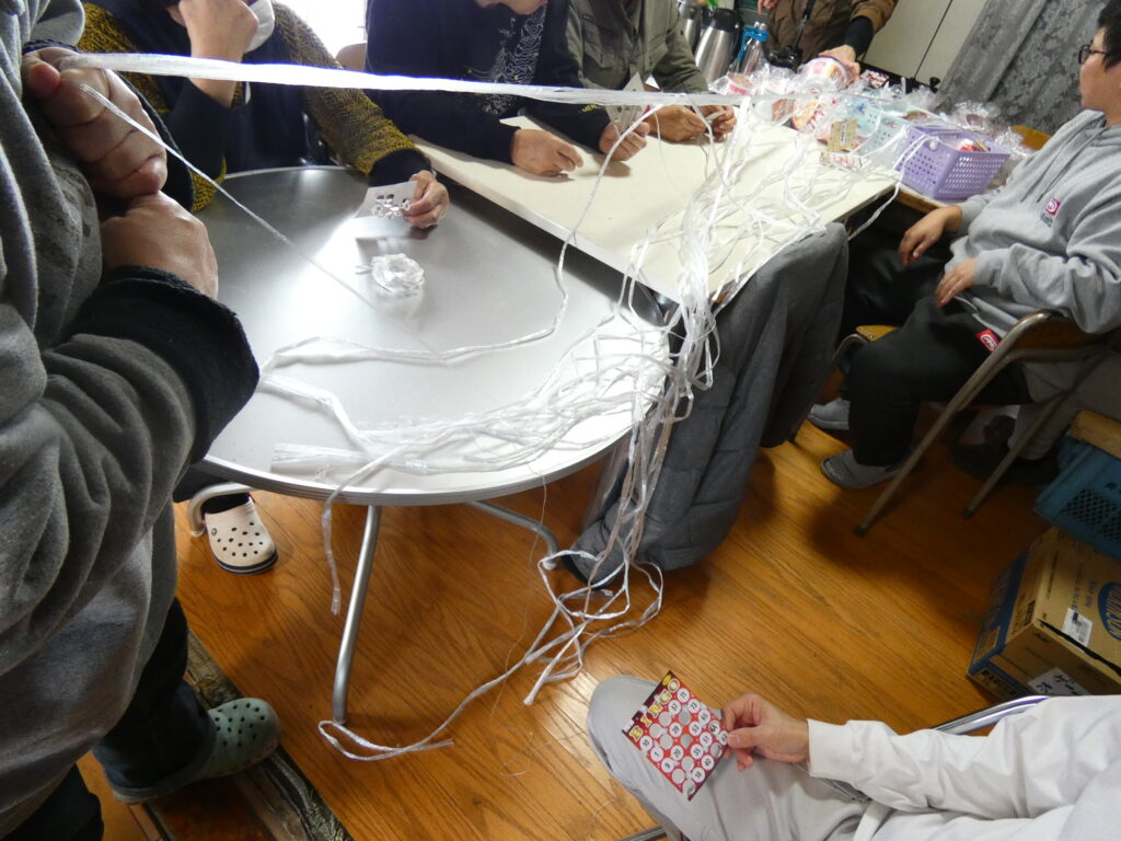 ブログ 今日で仕事納めです Posted on 2025年12月26日 by aunkuru 26 12月 本日をもって令和7年の工房江部乙の通所日は最後となりました。お互いを労いビンゴ大会、ホー引き大会、カラオケ大会で盛り上がりました。淹れたてコーヒーも美味しかったです。皆様よいお年をお迎えください。 aunkuru 一足早く年越しそば お雑煮