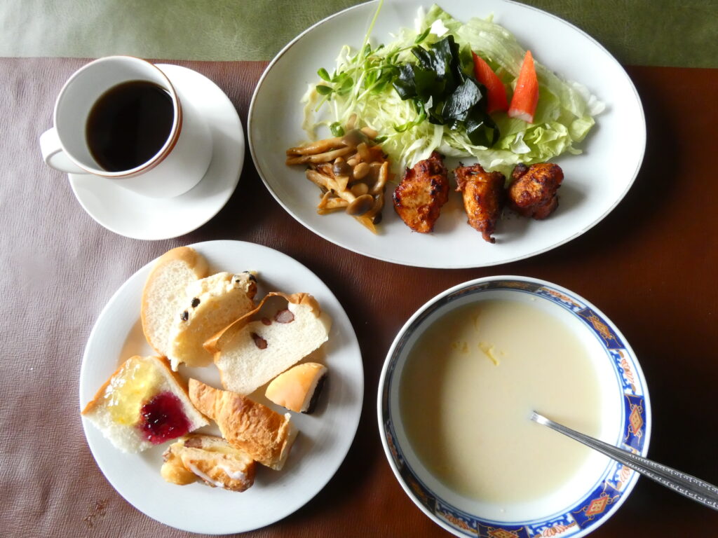 工房江部乙で作ったきな粉をまぶして揚げた唐揚げで、とてもジューシーでおいしいです。今日は節分で、大豆の入った野菜(玉ねぎ、ニンジン、シメジ)炒めの濃厚な旨味がとても美味しいです。